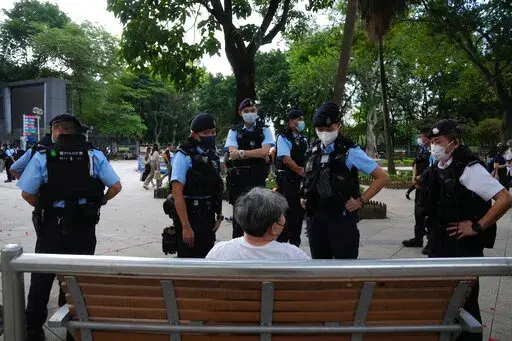 HONG KONG (AP) — Heavy police force patrolled Hong Kong’s Victoria Park on Saturday after authorities for a third consecutive year banned public commemoration of the anniversary of the deadly Tiananmen Square crackdown in 1989, with vigils overseas the only place marking the event.