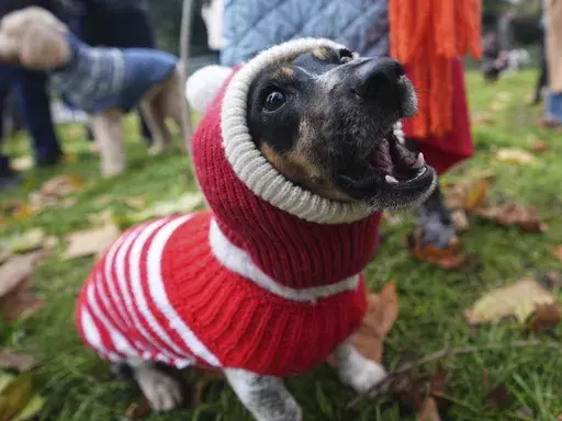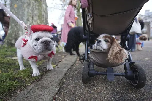 LONDON (AP) — Pooches in pullovers paraded past Buckingham Palace on Saturday for a gathering of dogs in Christmas sweaters to raise funds for rescue charities.