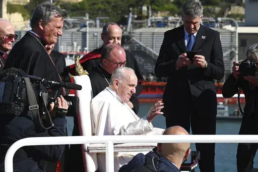 Later Saturday, Francis travelled by catamaran ferry to the island of Gozo, making his own the Mediterranean seafaring tradition to celebrate a prayer meeting at Malta’s national shrine. Flanked by two Maltese churchmen who are key aides at the Vatican, Francis sat on a white chair on deck for the hour-long trip and was welcomed by thundering canons as the ship came in Gozo’s port.