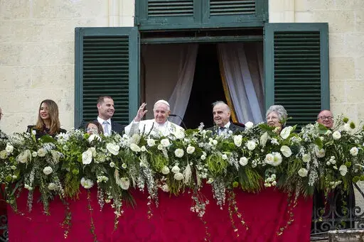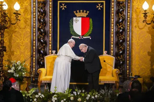 Francis also said the war had pained his heart so much that he sometimes forgets about the pain in his knees. Francis has been suffering for months from a strained ligament in his right knee. The inflammation got so bad that the Vatican arranged for a tarmac elevator to get him on and off the plane for Saturday’s flight to Malta, and his limp was more pronounced Saturday.