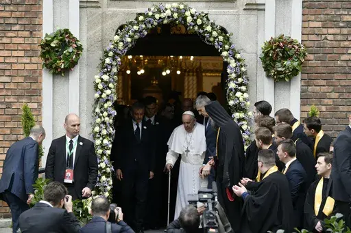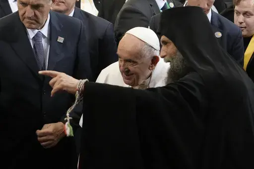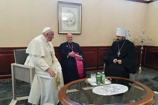 Immediately after greeting and encouraging the refugees, Francis visited the Greek Catholic church next door, which has been providing aid to refugees. And then he met with the Russian Orthodox Church’s representative in Hungary, Metropolitan Hilarion, who developed close relations with the Vatican during his years as the Russian church's foreign minister. The Vatican said the 20-minute meeting at the Holy See’s embassy in Budapest was “cordial.”
