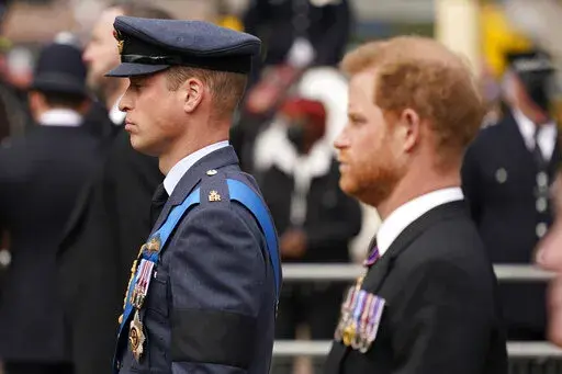 In the final pages, Harry describes how he and William walked side by side during the funeral procession of Queen Elizabeth II in September, but spoke barely a word to one another.