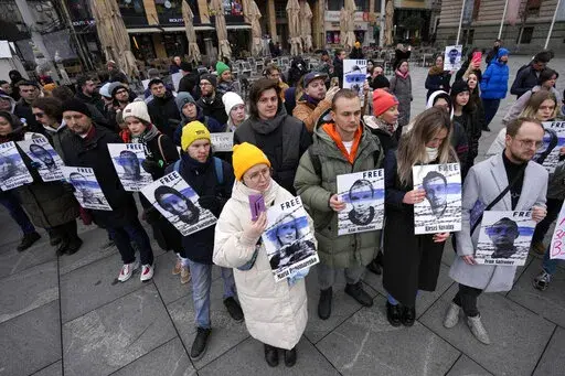 BELGRADE, Serbia (AP) — At a central square in Serbia's capital of Belgrade, dozens of Russians gathered recently to denounce President Vladimir Putin's war in Ukraine, holding up photos of political prisoners from their homeland.