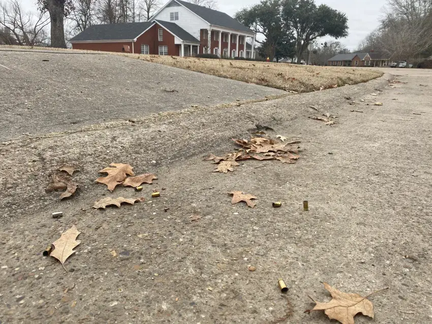 There were multiple casings from a .40-caliber pistol lying on the street. One of the houses on the street had six bullet holes in the exterior.