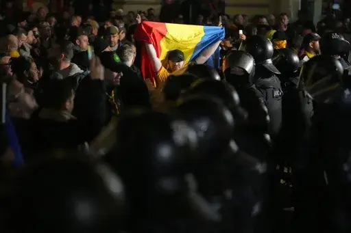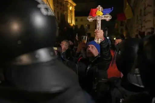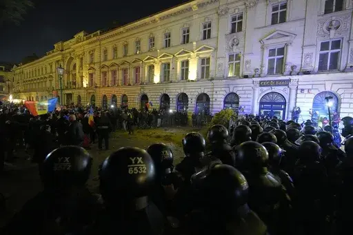 BUCHAREST, Romania (AP) — Chaos broke out in Romania's capital Sunday evening as incensed supporters of the far-right populist Calin Georgescu protested the electoral body's decision to reject his candidacy in a presidential election redo. He won the first round of last year’s race before a top court annulled the election.