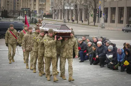 Elsewhere in the east, Donetsk Gov. Pavlo Kyrylenko said one person was killed in strikes on Bakhmut, and eight others were wounded. The battles for Bakhmut and the nearby town of Soledar remained among the bloodiest on the front, Zelenskyy said.