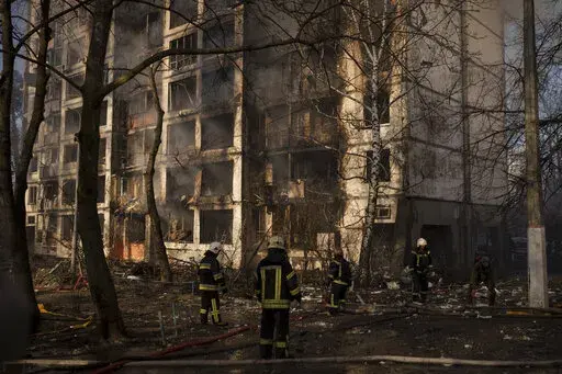 In the east, Russian forces blasted downtown Kharkiv with artillery, hitting the city's historical center, including its main marketplace. Rescuers were pulling the bodies of dead civilians from destroyed apartment buildings.