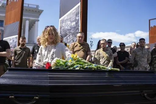 At the farewell ceremony, Ukrainian soldiers carried Fouché's coffin through Kyiv’s landmark Independence Square, the site of mass protests in 2014 that forced out a pro-Russian president, towards a memorial for the country's fallen defenders. Fouché's comrades held back tears as they lined up to say goodbye. Mourners read prayers as they held up Ukrainian flags and military banners.
