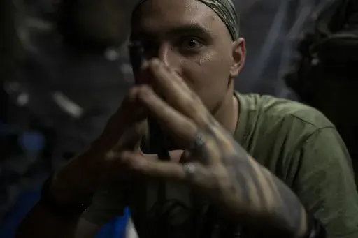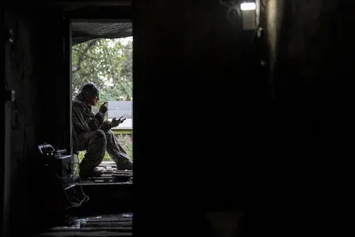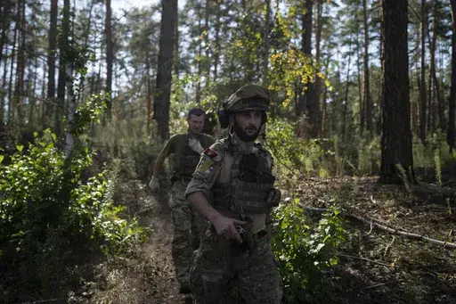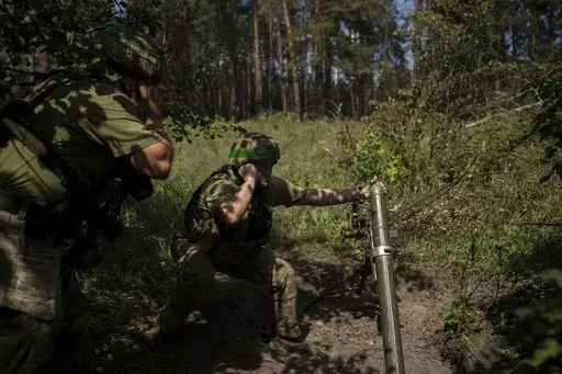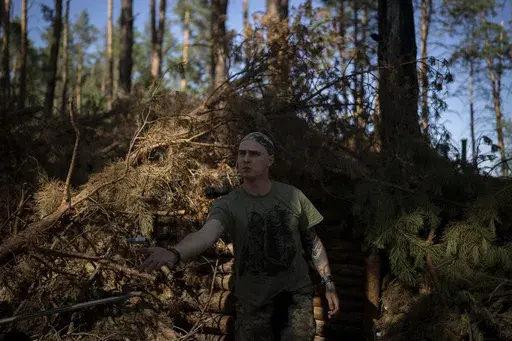 LYMAN, Ukraine (AP) — Concealed under pine branches in the forests of northeast Ukraine, the muzzle of a Soviet-era howitzer rises, aiming for a group of approaching Russian infantrymen many kilometers away.