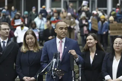 “The word I would use is relief, right?" third-year medical student Natalie Koconis said when asked for a response to the judge's ruling. One of a group of medical students and doctors in white coats who held signs outside the courthouse, Koconis said Trump's executive order “is something that has already had material impacts on our ability” to treat transgender youth. "All we want is just everybody to get the care that they need and deserve.”