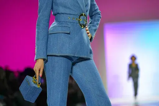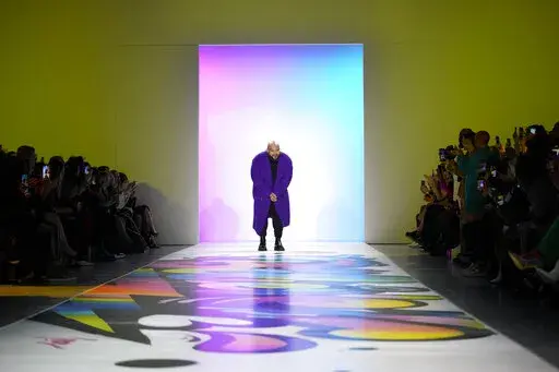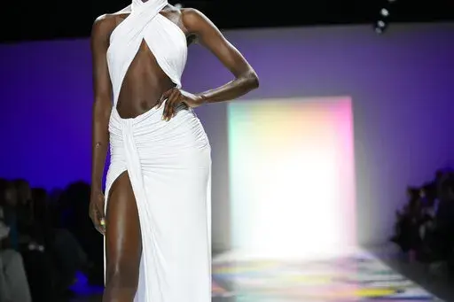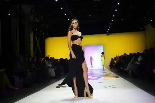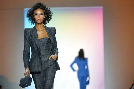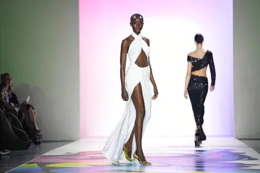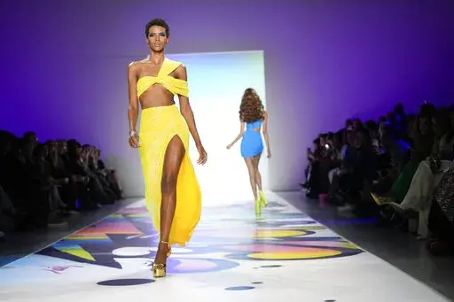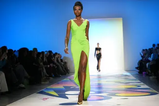 NEW YORK (AP) — Sergio Hudson created a nostalgic scene with shoulder pads, neon colors and graffiti prints taken right out of the early '90s with his latest collection Saturday.
