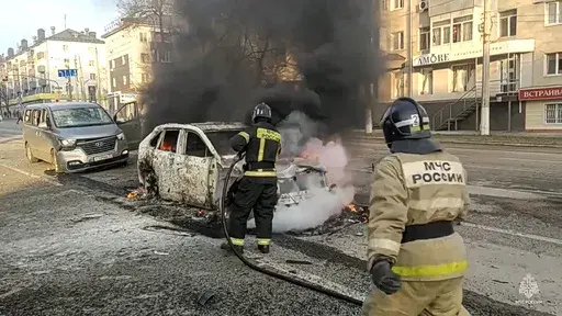 Images of Belgorod on social media showed burning cars and plumes of black smoke rising among damaged buildings as air raid sirens sounded. One strike hit close to a public ice rink in the very heart of the city, which lies 25 miles (40 kilometers) north of the Ukrainian border and 415 miles (670 kilometers) south of Moscow. While previous attacks have hit the city, they have rarely taken place in daylight and have claimed fewer lives.