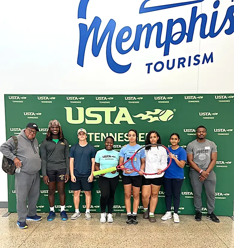 Several representatives from the Greenville CTA/NJTL attended a USTA coaching clinic at the University of Memphis Tennis Center on Saturday, November 1. Pictured left to right are Birlette Jelks, Alex Parnell, Michael Columbus, Jr., Jaslyn Barrow, Zara Washington, Zacara Washington, Baruni Jakkula, and Christopher Adams.