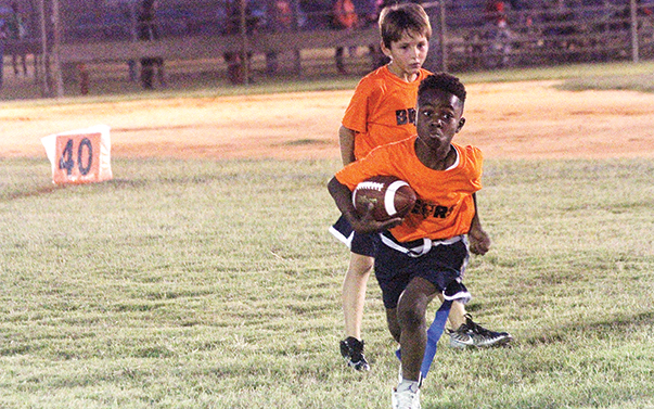 From 25 yards out, Larry Anderson ran in the winning touchdown to lead his Bears to victory Monday night in a 7-9 year-old flag football game at the Wards Recreation Center.