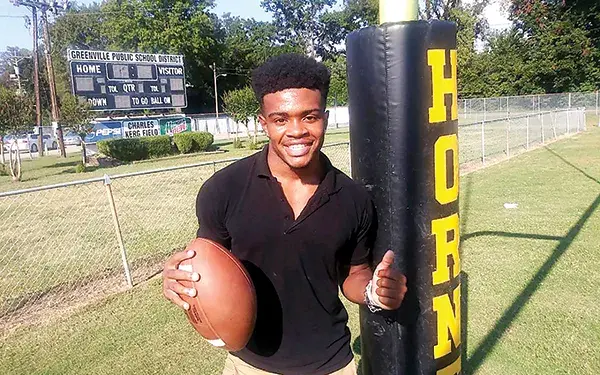 Simmons Jr., the Planters Bank Player of the Week, scored three receiving touchdowns last week during the Hornets’ 49-8 home victory over Ruleville Central High School. In total, he amassed 185 receiving yards from quarterback Ty’Mitchell McCollough. Simmons Jr. also had two long touchdown returns called back because of penalties.