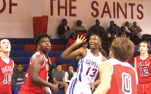 The Saints (6-3) pulled the game away late in the third quarter after Delta Academy had cut the lead to 10 points. Back-to-back buckets by Travis Willis and JaMichael Short put the Sants up by 14 points and then a 3-pointer by Josiah Claiborne virtually put the game away, 42-25, with a minute left until the final period.