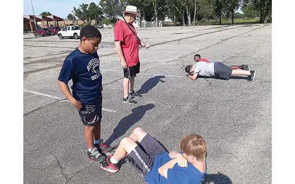 The young Bulldogs were allowed to meet on campus for the first time since the coronavirus pandemic began in March. In order to meet proper health guidelines, coaches from each sport watched the athletes as they went from one conditioning drill to another. While baseball coach Boo Ellis, for example, worked with a group of football players on footwork, boys basketball coach Eddie Wade would be working with softball players on improving their strength.