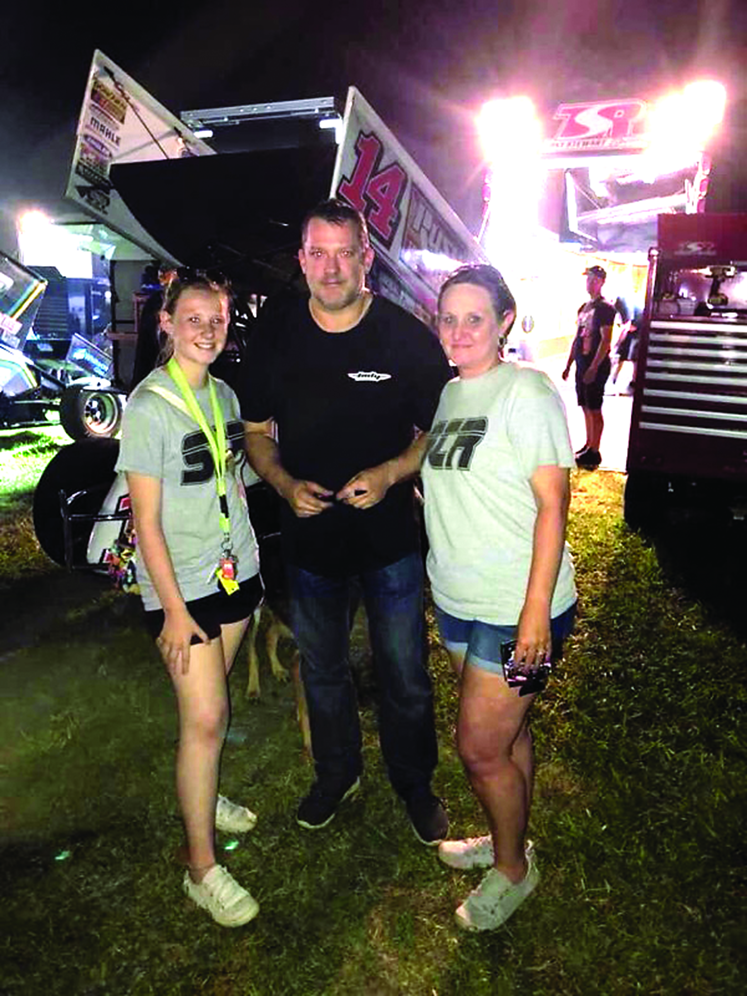 During pauses in the action, fans gathered close to the gate to take pictures of Stewart’s vehicle. “Look over here one time Smoke,” one man said. “Let me get this picture of you.” Fans also stopped by the Tony Stewart racing truck to pickup memorabilia such as T shirts, buttons and posters. Adoring fans gathered around his trailer after his race waiting to catch a glimpse of the star. “He’s my hero and a legend,” said John Horn of Cleveland. “I just want to shake his hand.”