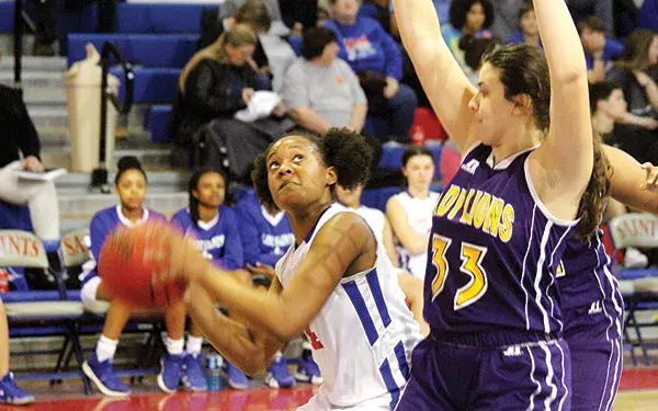 GCS built its lead in the second quarter with the help from the long-range touch of Claiborne. Claiborne buried three three-point shots in the second period to help the Lady Saints lead 34-21 at the halfway mark. Claiborne added a pair of three-pointers in the second half to finish with 17 points.
