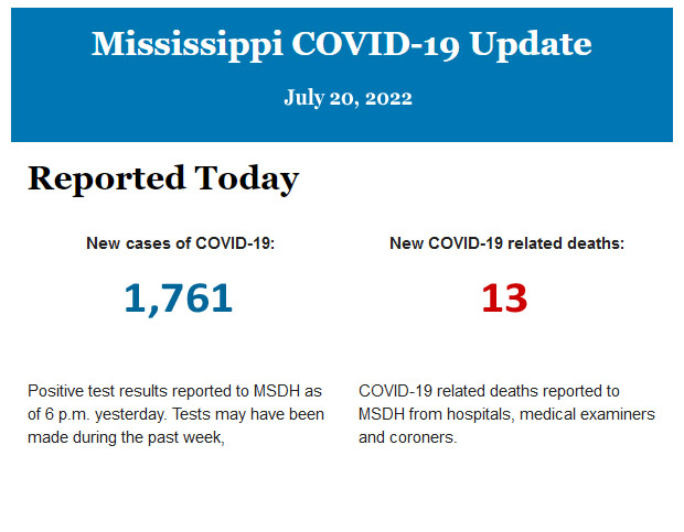 Listed below is the daily COVID-19 update for the state of Mississippi.