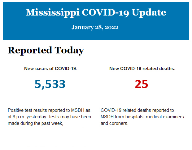 Listed below is the daily COVID-19 update for the state of Mississippi.