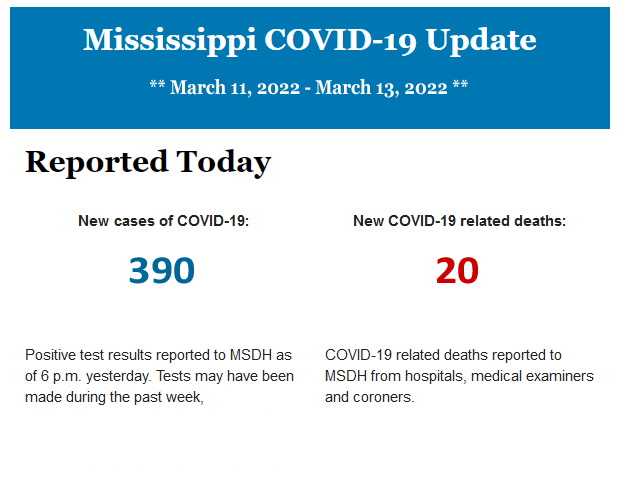 Listed below is the daily COVID-19 update for the state of Mississippi.
