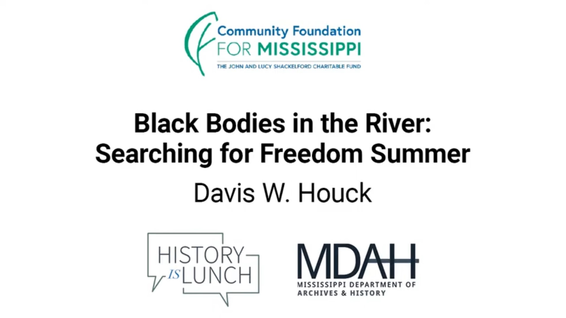 On November 2, 2022, Davis Houck discussed his new book Black Bodies in the River: Searching for Freedom Summer as part of the History Is Lunch series.