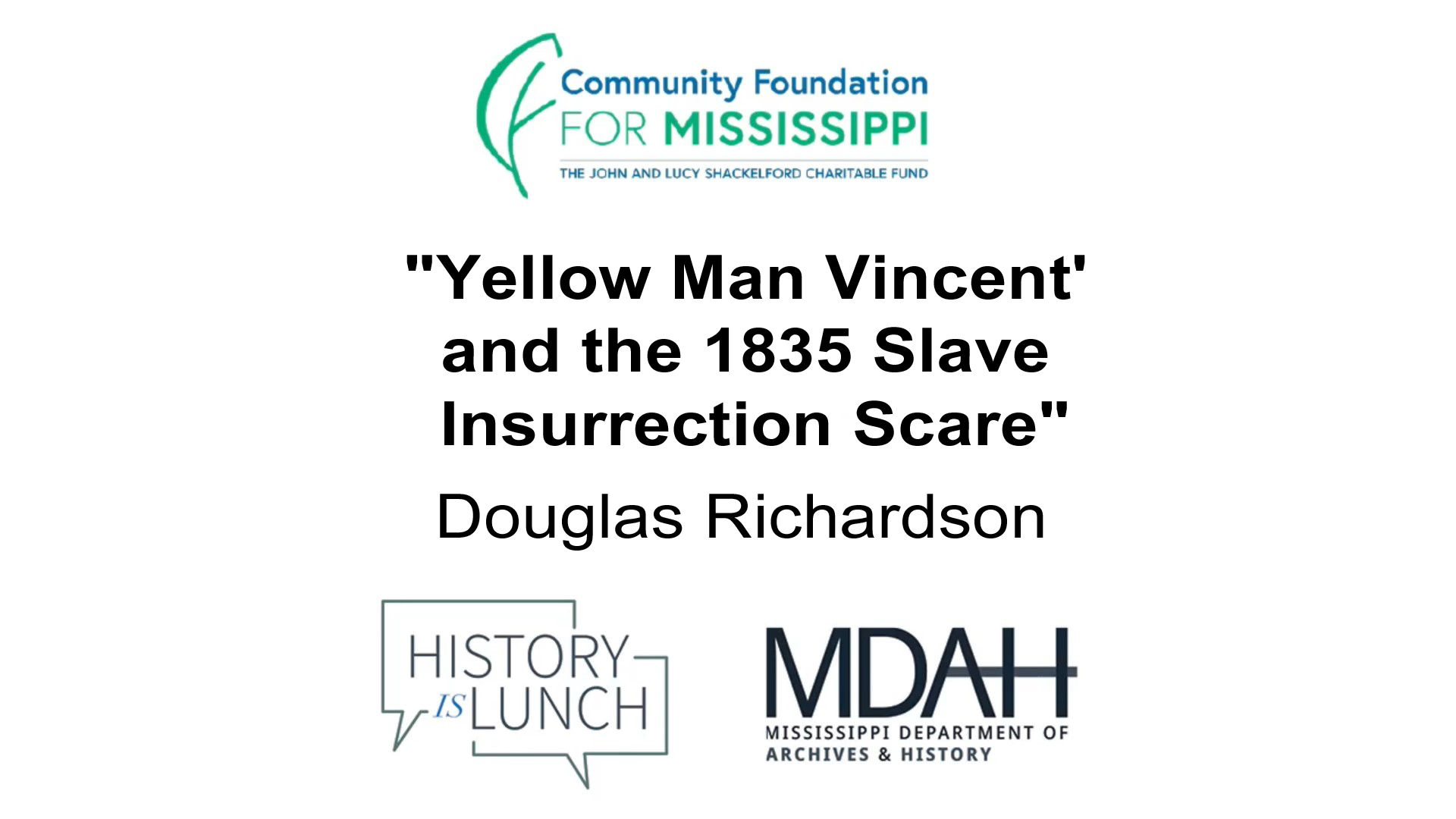 On September 14, 2022, Douglas Richardson presented “'Yellow Man Vincent' and the 1835 Slave Insurrection Scare” as part of the History Is Lunch series.