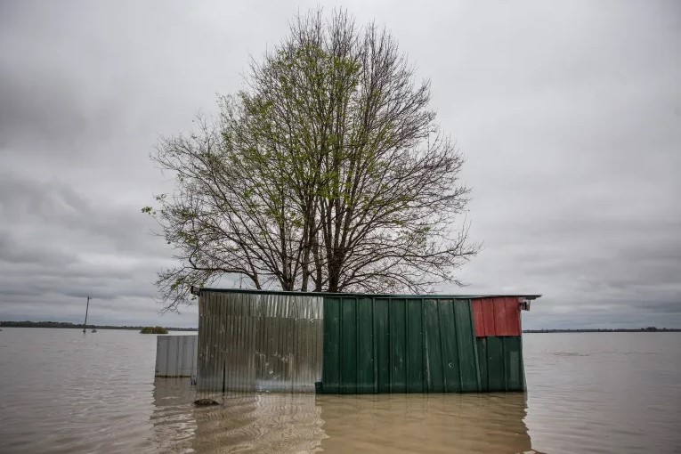 Farm equipment is nearly submerged in flood water in north Issaquena County, Miss., Friday, April 5, 2019. Credit: Eric J. Shelton, Mississippi Today/Report For America