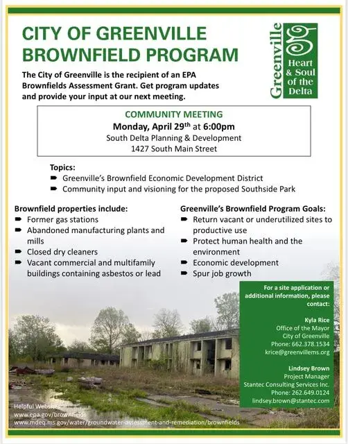 Mayor Errick D. Simmons Invites the Public to the City of Greenville Brownfield Program Community Meeting on Monday, April 29. 2024.