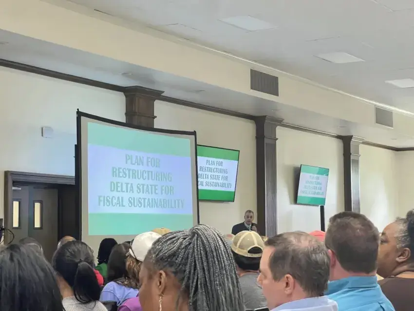 Protesters at the University of Mississippi in Oxford on May 2, 2024, joined the chorus of demonstrators at college campuses across the country calling for their administrations to divest any interest in businesses working with Israel in response to the nearly 35,000 Palestinian deaths in Israel's response to the deadly Hamas attack on Israel on Oct. 7, 2023. Credit: Molly Minta/Mississippi Today