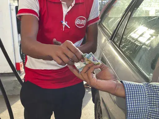 People wearing face masks walk past a bank's electronic board showing the Hong Kong share index in Hong Kong, Tuesday, Nov. 23, 2021. Asian shares were mixed Tuesday after a late drop left major Wall Street indexes mostly lower. (AP Photo/Kin Cheung)