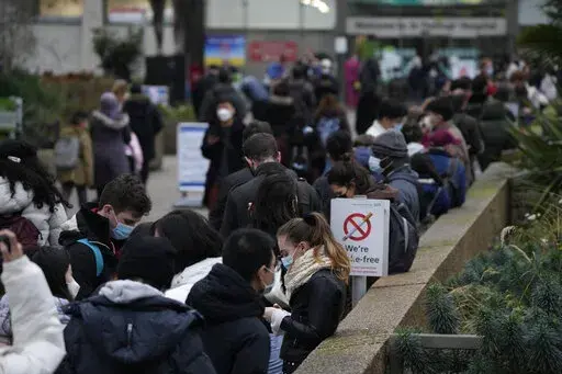 LONDON (AP) — The omicron variant is spreading so rapidly it has the potential to overwhelm Britain’s hospitals, highlighting the need to strengthen coronavirus restrictions and speed up the delivery of booster vaccine shots, the country's health minister said Tuesday.