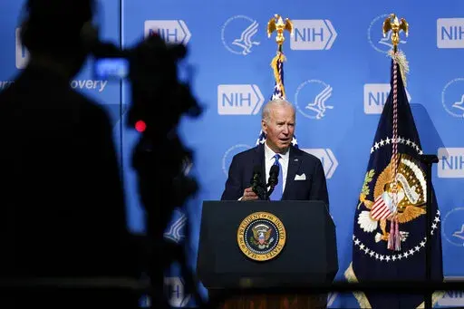 Dr. Anthony Fauci, the top U.S. infectious disease expert, wears a face mask as he arrives for the the White House COVID-19 Response Team's regular call with the National Governors Association in the South Court Auditorium in the Eisenhower Executive Office Building on the White House Campus, Monday, Dec. 27, 2021, in Washington. Fauci says the U.S. should consider a vaccination mandate for domestic air travel as coronavirus infections surge. To date the Biden administration has balked at the idea, anticipating legal entanglements. (AP Photo/Carolyn Kaster)