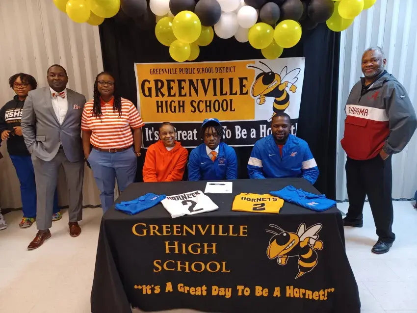 Greenville High School athlete Keldrick Wooten signed a baseball scholarship with Arkansas Baptist College in Little Rock. Wooten, who batted over .300 this season, will play outfield in college. He was joined at the signing by Aleta Mathews (mother), Kendrick Wooten Sr. (father) Kendrick Wooten Jr. (brother), Kennedi Shead (cousin), Aynisjah Mathews (cousin), Faye Mathews (grandmother), Marilyn Bowman (grandmother), Sherrod Reed (coach), Jeffrey Jones (Greenville High head baseball coach and athletic director Markeith Washington.