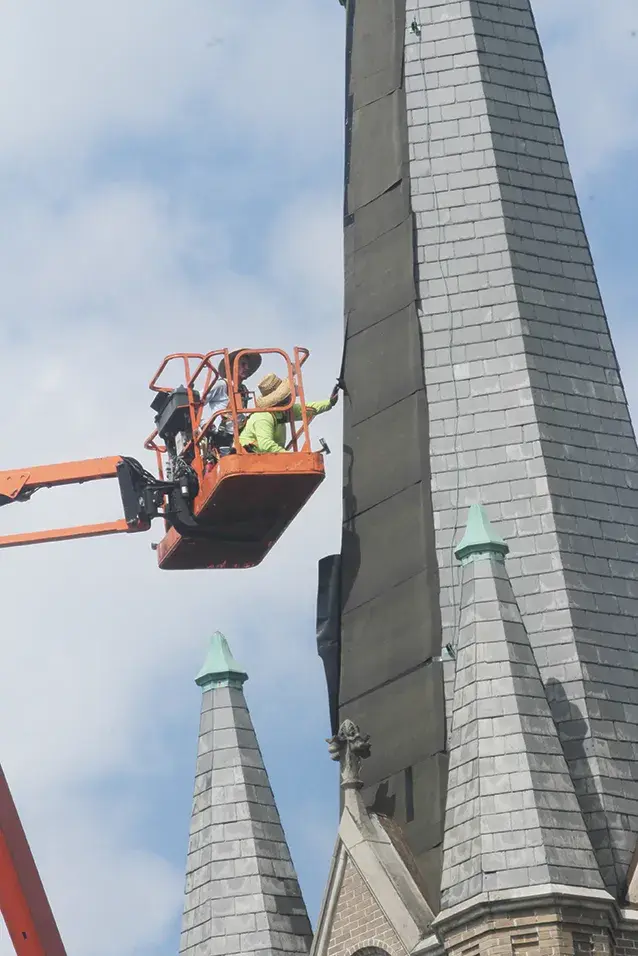 This week, the original tiles from the 1906 construction of the roof of St. Joseph Catholic Church in downtown Greenville are being removed.