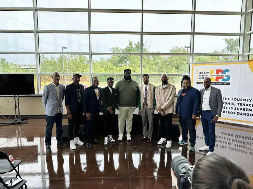 Some of the notable attendees of Higher Purpose Co.'s Men's Entrepreneurship Conference at Harlow's Casino on Saturday, April 15 include (Left to right) Sean Cokes, J Ivy, Dr. Oni Omoregie (HPC Senior Programing Officer), Dr. Tim Lampkin (HPC's Founder & CEO), Rel Carter, Quintin Crumpler, Isaac "Chill" Yowman, Winfield Ezell, Jr and Aaron Mitchell.