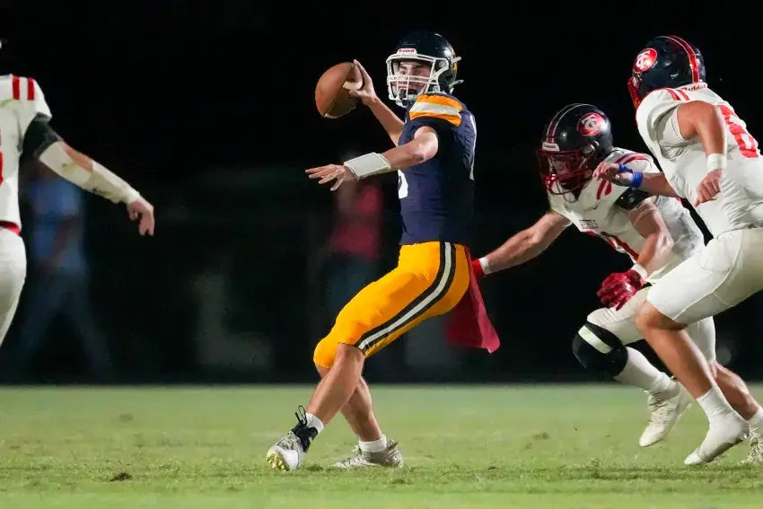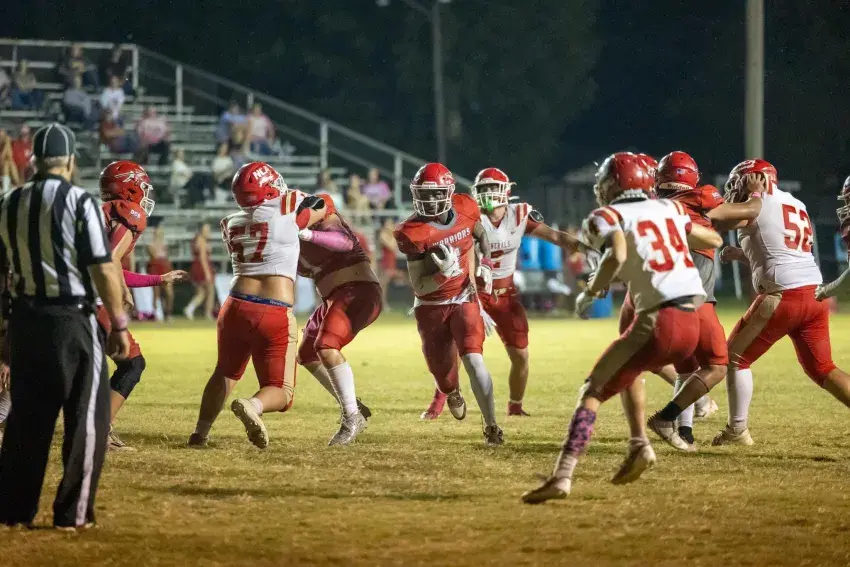 The Simmons Blue Devils improved their record to 5-0 with a resounding 38-0 victory over South Delta on Friday. Left: Simmons standouts Eddie George (No. 4) and Kanzavius Lundy (No. 7), Jamarion Lundy (No. 10) and Tyran Wolson (No. 62) have all been key contributors to the Simmons success.