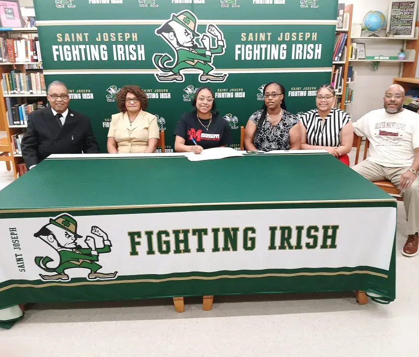 Ma’Leah Morris signed a scholarship on Thursday to play basketball at East Mississippi Community College. She was joined in the ceremony by Dr. Lee E. Morris (grandfather), Diane Jones Morris (grandmother), Jennifer Morris (mother), Rev. Lee Morris, Sr. (father) and Ja’Leah Morris (sister).