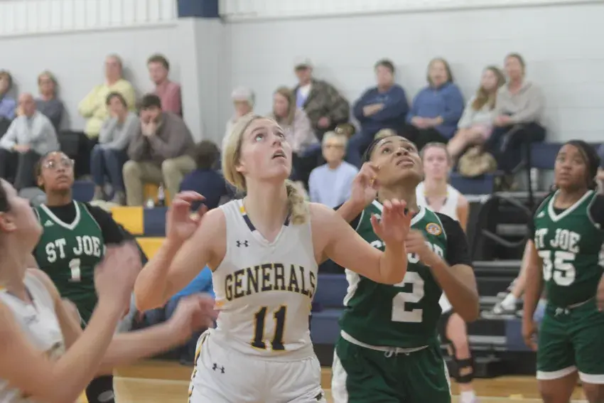 The Washington School girls basketball team has been showing improvement all season for head coach Yvette McPherson. On Wednesday night, in their final regular same of the season, the Lady Generals closed things out in style in their 48-12 victory over the St. Joseph Catholic School Fighting Irish.