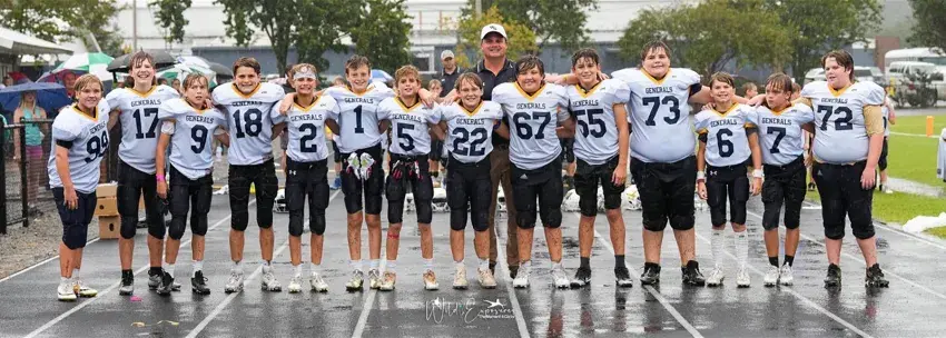 The players on Coach Taylor Henderson’s 2023 Washington School Pee Wee football team are (from left) Ben Buchberger, Colt Chaffinch, Trace Wood, Pfeiffer Doolittle, Preston Henderson, Lampton Walker, Baker Henderson, John McCord, Garner Hughes, Rick Smythe, Grant Hernandez, Hobson Cox, Jagger Wells and Canon Alverson.
