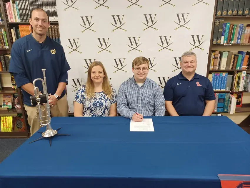 Parker Carlisle, a senior at Washington School, has always had an ear and a talent for music. He began playing the trumpet when he was in the sixth grade. On Tuesday, Carlisle’s years of training on the instrument reached a joyful note as he signed a scholarship Tuesday to join the Ole Miss marching band.