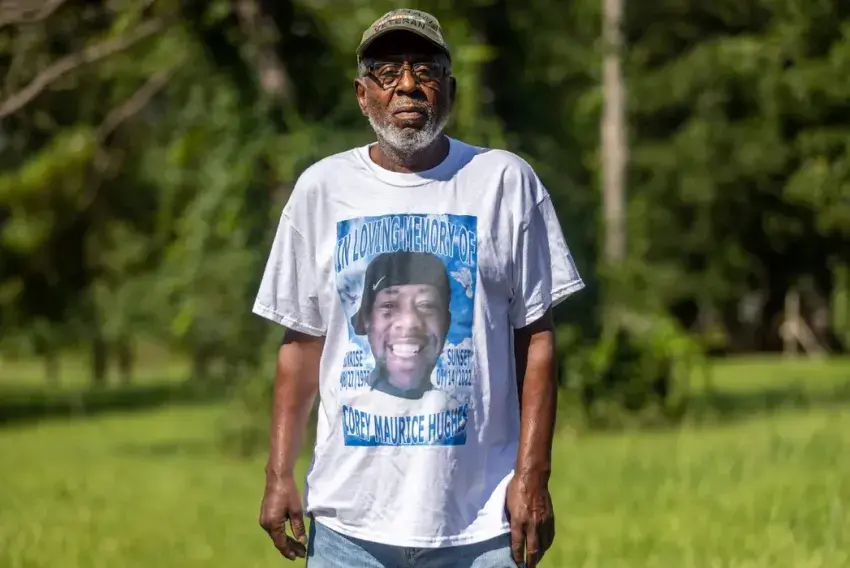 James E. Hughes, father of Corey Maurice Hughes, poses for a portrait near his home in the Palmers Crossing community in Hattiesburg, Miss., Tuesday, August 16, 2022. Corey was shot and killed by a Forrest County Sheriff's deputy, as deputies attempted to transport him to a mental health facility. Credit: Eric Shelton/Mississippi Today