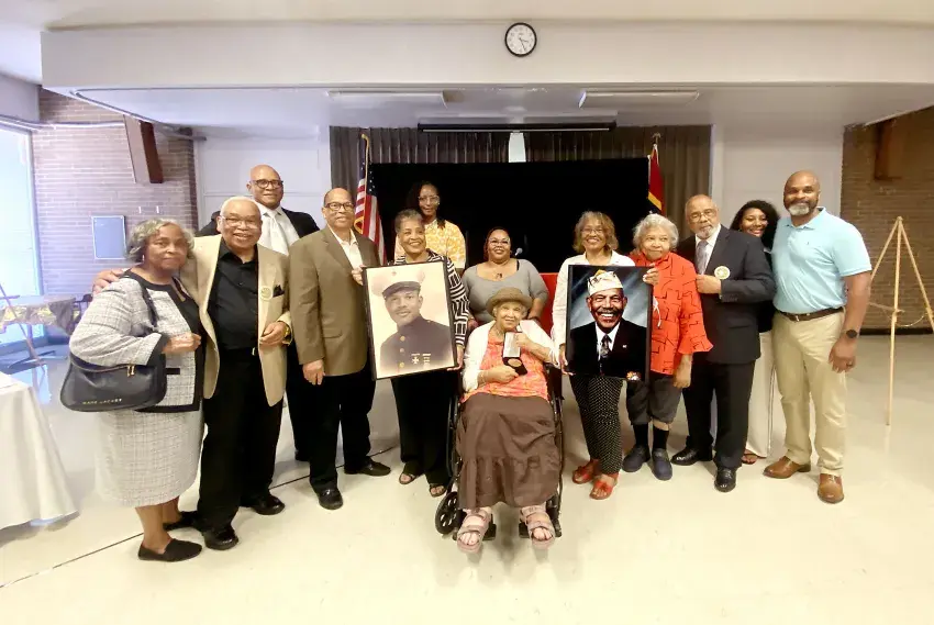 The family of the late Charlie Leon Moore gathered to celebrate his recognition as a Congressional Gold Medal recipient. Pictured are, from left, Armedia Stubbs, Gregory Moore, Carl McGee (back), Stanley Moore, Iris McGee, Alexandra Landing (back), Irene McGee, Alfalonia Moore (front), Janis Moore, Lynelle Moore, Charles Moore, Kincyl McGee, and Carlton McGee