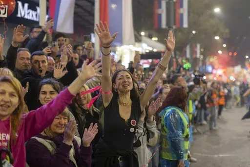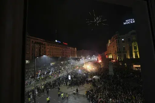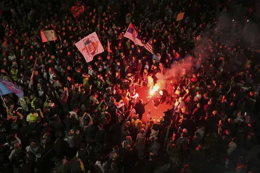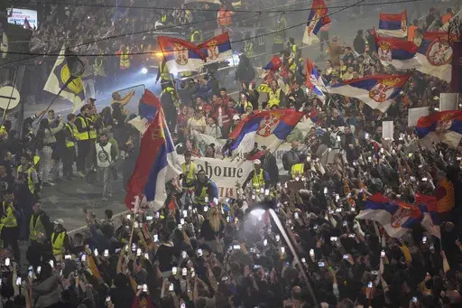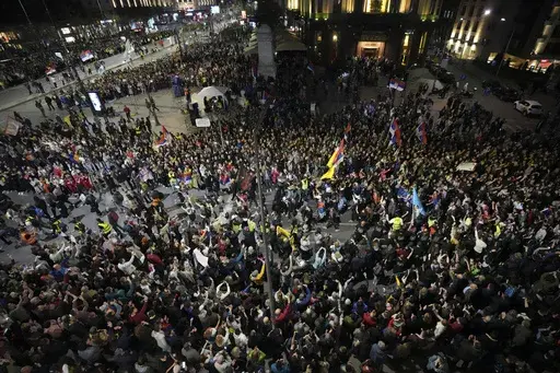 BELGRADE, Serbia (AP) — Tens of thousands of people swarmed the streets in Serbia's capital Belgrade on Friday, staging a joyful prelude to a major anti-government rally on the weekend and dealing a blow to populist President Aleksandar Vucic.