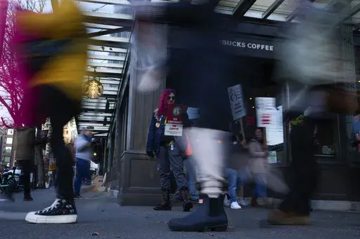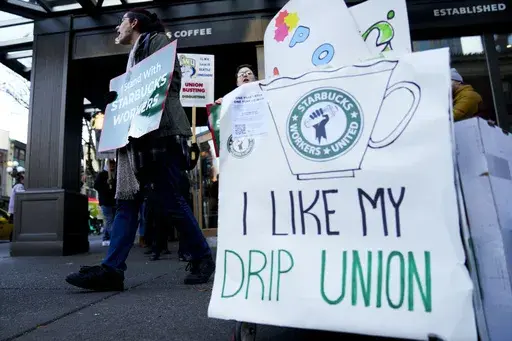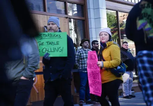 But on Thursday, most strikers were focused on work issues and pay. Moonie Atchley, who works as a mixologist at a Starbucks store in the company's hometown of Seattle, was picketing outside a non-union store near Pike Place Market, where the first Starbucks opened in 1971.