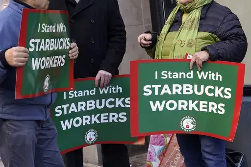 The union said it was expecting more than 5,000 workers to take part in its “Red Cup Rebellion.” Workers were expected to picket for part of the day and visit non-union stores the rest of the day, the union said. Around 30 stores also staged walkouts on Wednesday.