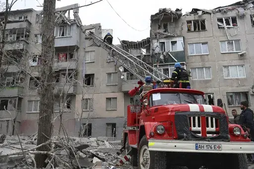 KYIV, Ukraine (AP) — The death toll from Russian missile strikes on eastern Ukraine's city of Sloviansk rose to 11 Saturday as rescue crews tried to reach people trapped in the rubble of an apartment building, Ukrainian authorities said.