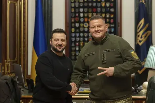 After days of speculation that change was coming, Ukrainian President Volodymyr Zelenskyy said on social media that he was thankful for the service of the outgoing Gen. Valerii Zaluzhnyi — a military leader popular with troops and the general public. “The time for ... a renewal is now," Zelenskyy said on X.