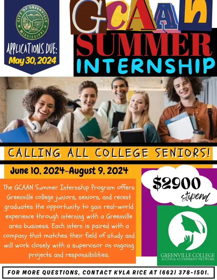 The Greenville College Access and Attainment Network is offering a summer internship opportunity for college juniors, seniors, and recent graduates. Selected applicants will receive a $2,900 stipend for interning with a Greenville area business. To request an application, email The deadline to apply is May 30, 2024.